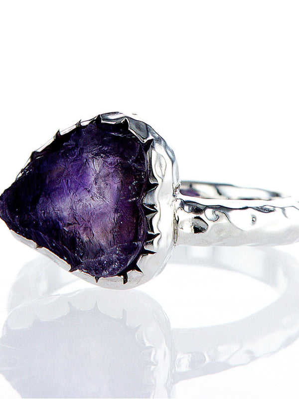Artisan silver ring set with Amethyst stone. statement ring for her. Skillfully handcrafted, this ring features a polished stoning ring makes a fabulous gift for yourself or someone special, Ring face measures 10 by 12 mm. size 8 and I can make any size you wish.