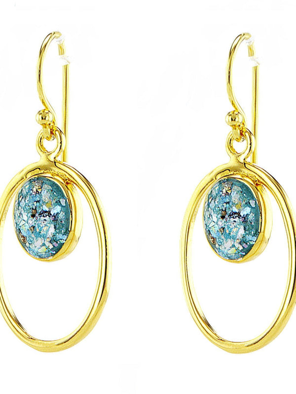 עגילים מצופים זהב 14 קראט עם זכוכית רומית עגילים מצופים זהב 14 קראט עם זכוכית רומית
